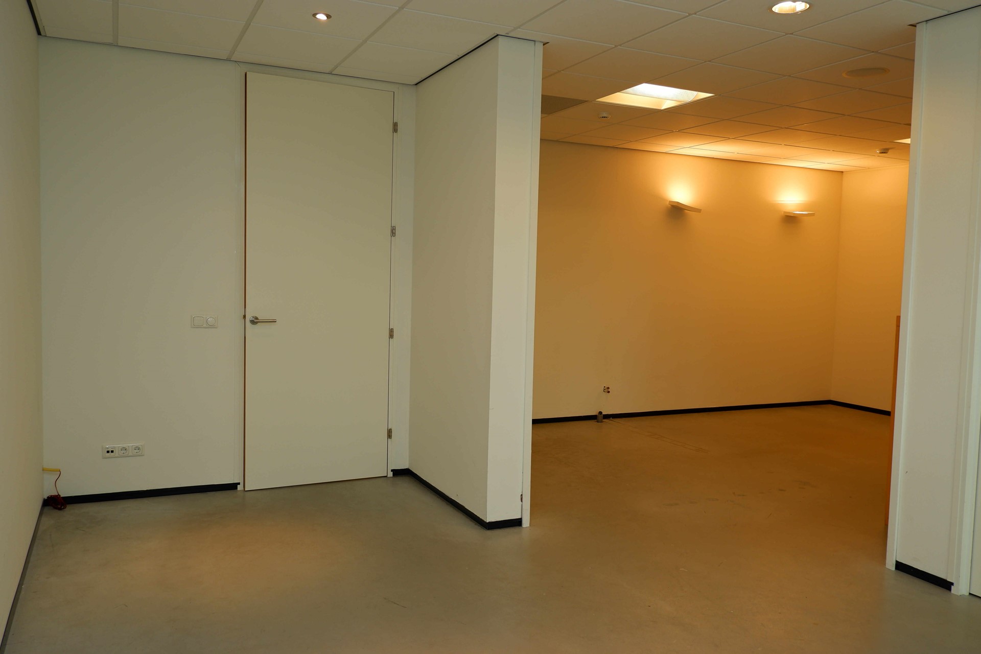 Via de galerij aan de voorzijde toegang tot een grote kantoorruimte van ca. 51 m2. Met o.a. een toiletruimte en pantry (incl. vaatwasser). Aan de achterzijde bevindt zich nog een ingang en een tweetal kantoorruimten.