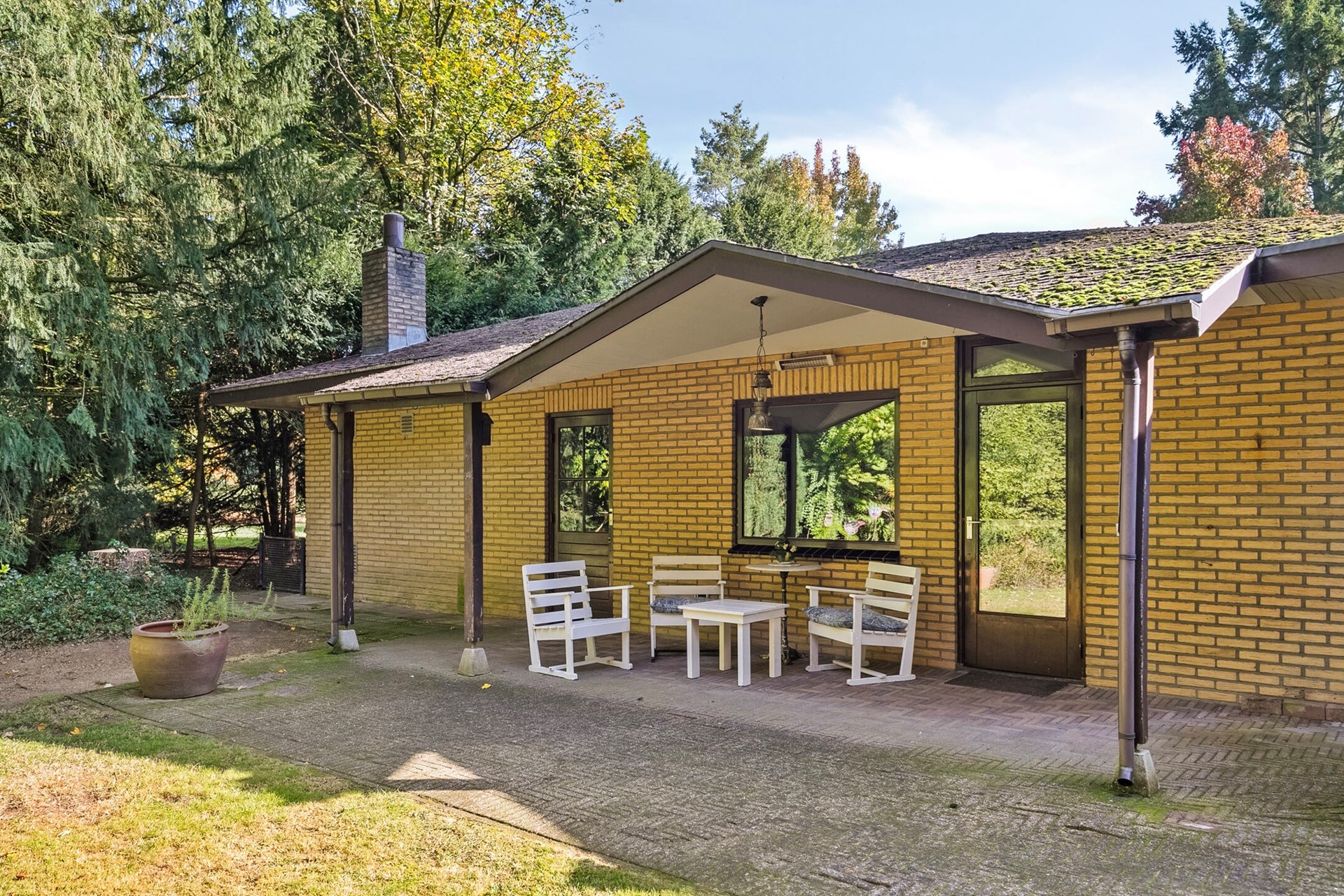 PRACHTIG GELEGEN IN DE BOSSEN NABIJ NATUURGEBIED 'LOOSERPLAS', EEN VRIJSTAANDE BUNGALOW MET INPANDIGE GARAGE EN HEERLIJK RUIME TUIN C.Q. BOS.