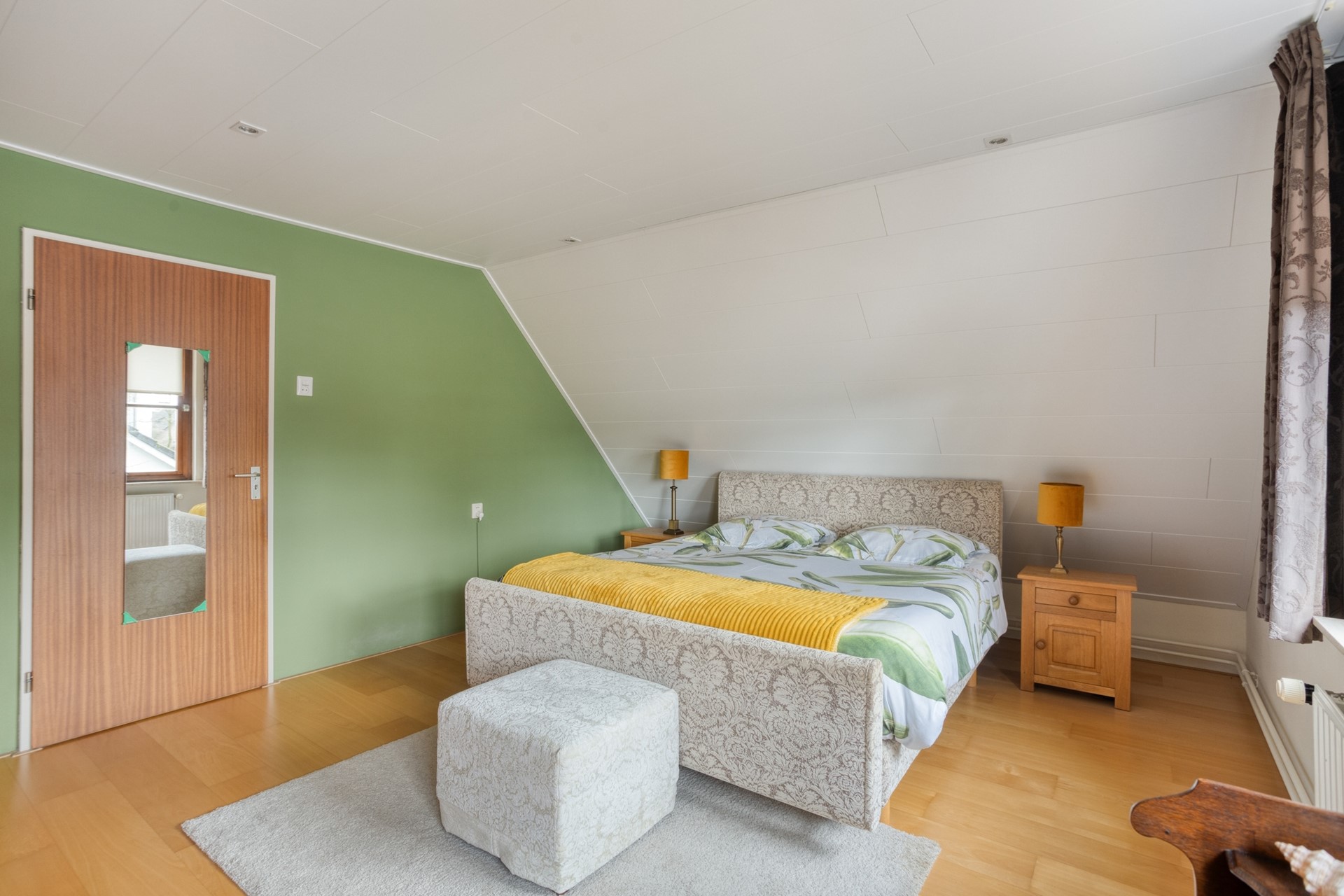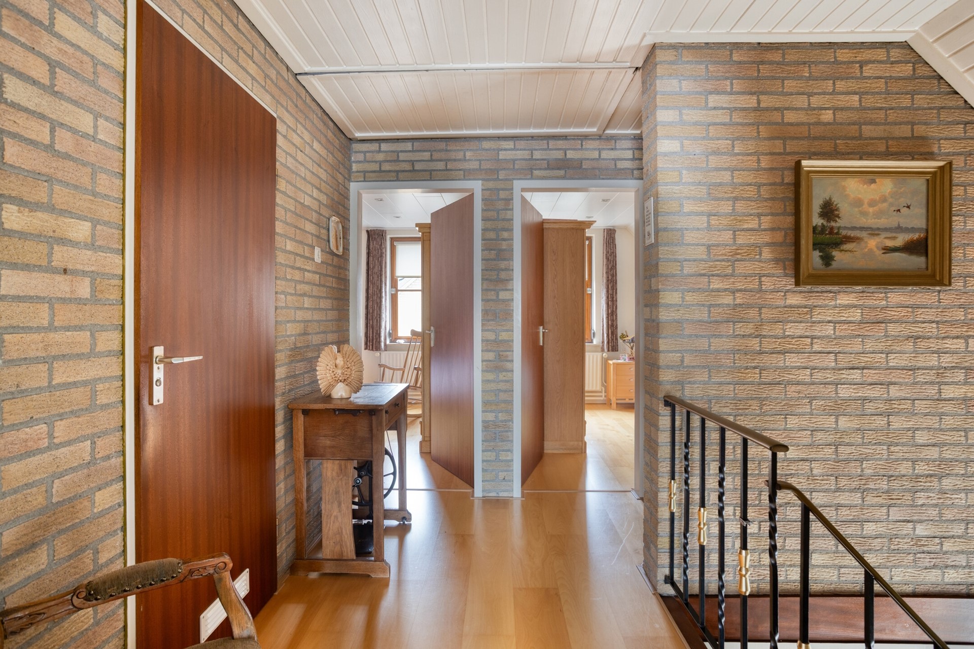 Vanuit de ruime hal via de open trap met hardhouten treden naar de overloop c.q. vide, met een laminaatvloer, schoonmetselwerk wanden en een licht schroten plafond. Een volledig betegelde badkamer met elektrische vloerverwarming en een MDF plafond met inbouwspots. Voorzien van een douchecabine met 2 zitjes en thermostaatkraan, een kunststof ligbad met thermostaatkraan en een badmeubel met wastafel met 2 kranen en een spiegel met verlichting. Er is zowel mechanische- als natuurlijke ventilatie aanwezig. Met een hardhouten dakkapel met enkele beglazing en een rolluik. Op de overloop ligt een separaat, volledig betegeld toilet met een MDF plafond met inbouwspots. Met een wandcloset met opzetplateau. De drie slaapkamers hebben een laminaatvloer, stucwerk wanden en een MDF plafond met inbouwspots. Alle slaapkamers zijn voorzien van hardhouten raamkozijnen met enkele beglazing en rolluiken.