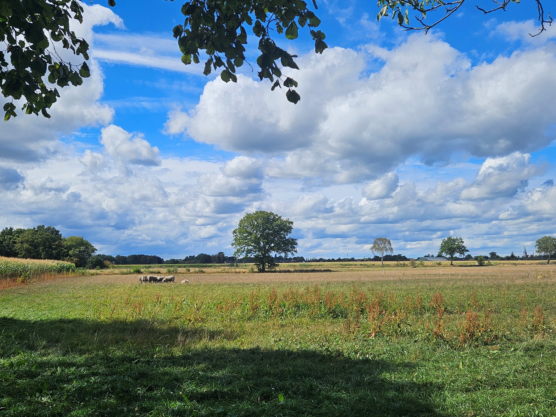 - Diepe en volledig omheinde achtertuin direct grenzend aan weilanden