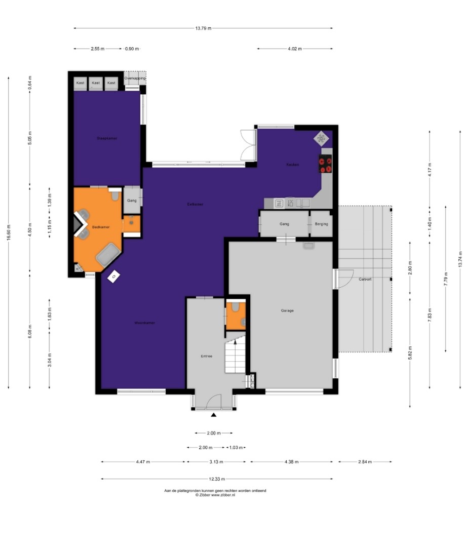 Vanuit de woonkamer/keuken naar een 2e portaal, met een muurkast, toegang tot de royale, inpandige garage c.q. kantoor. Met een betonvloer, een uitstortgootsteen en de unit van de centrale stofzuiginstallatie. Hier bevindt zich ook de computergestuurde beregeningsinstallatie voor de tuin. Via een geïsoleerde sectionaaldeur toegang tot de brede oprit. Naast de woning bevindt zich een carport, met inbouwspots. Onder de carport rechtstreeks toegang tot de garage middels een aluminium deur.