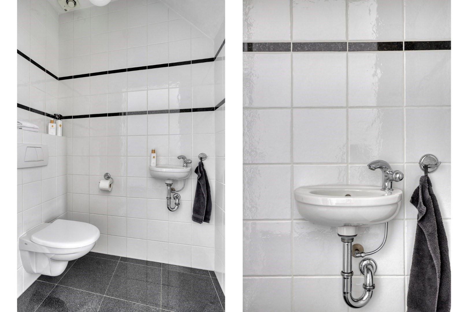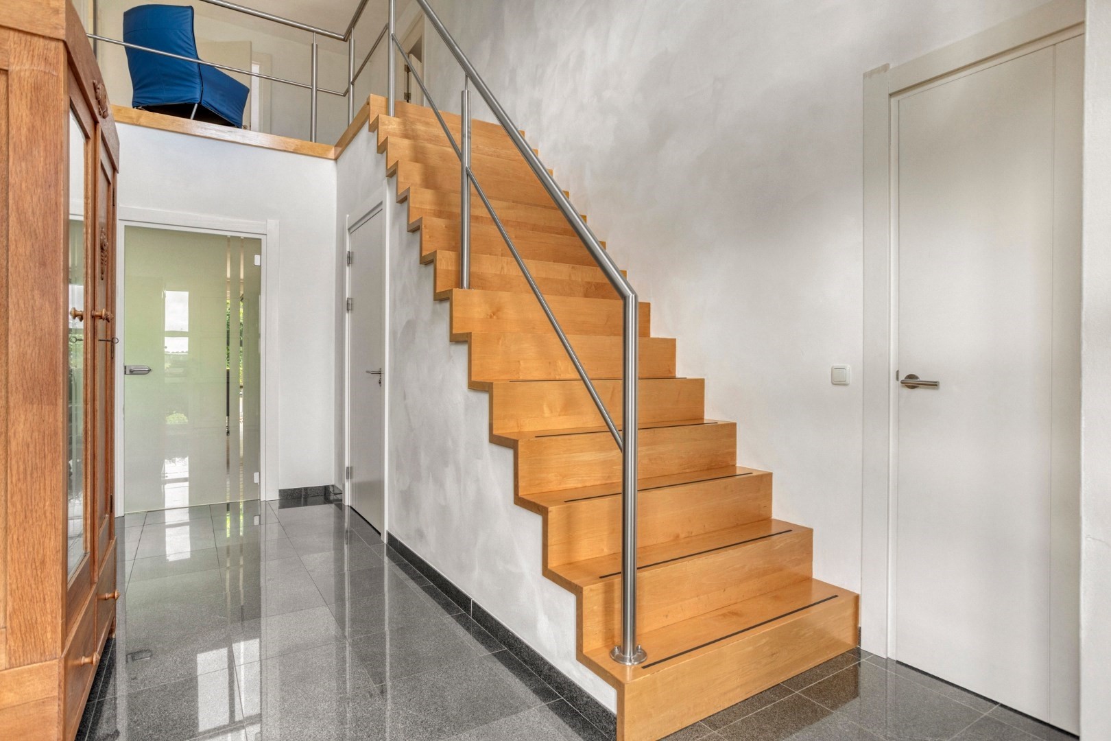 Toegang tot de woning via een aluminium voordeur. Sfeervolle, ruime entree met een vide. Met een granieten tegelvloer, stucwerk wanden en -plafond. Uitgebreide meterkast (o.a. 12 groepen + krachtstroom). Onder de trapopgang bevindt zich een volledig betegeld toilet met een wandcloset en een fonteintje.