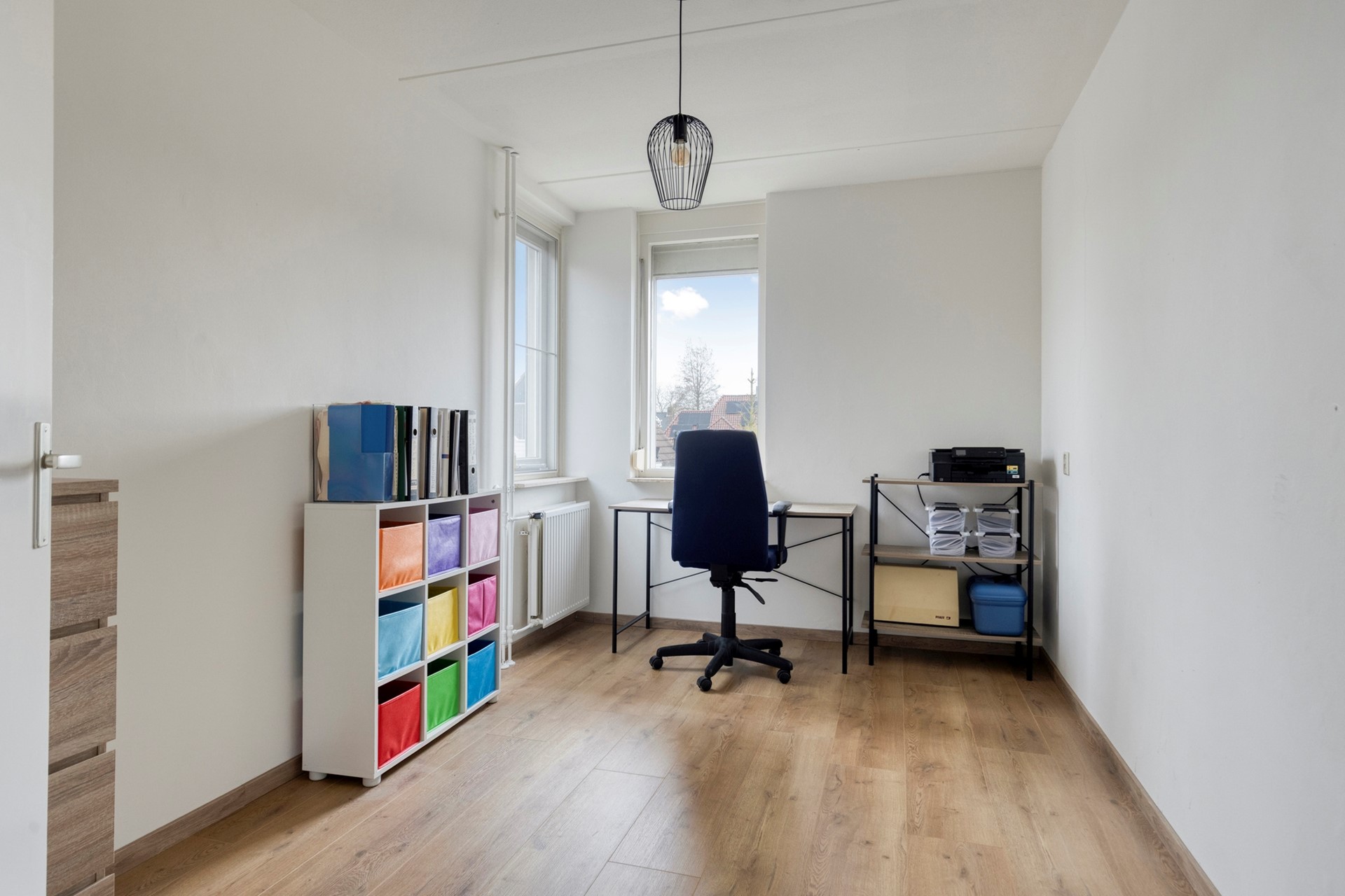 Vanuit de entree met een, met vloerbedekking beklede, trap naar de overloop. Met daglicht middels een kunststof gevelkozijn (draai-/kiep) met dubbele beglazing, vliegenhor en een rolluik. Vanuit de overloop naar een drietal slaapkamers en de badkamer.