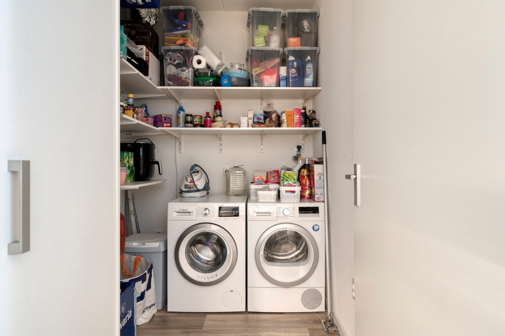 Vanuit de keuken toegang tot een separate was-/CV-ruimte, welke is voorzien is van een pvc vloer. Hier bevindt zich de aansluiting voor de wasapparatuur en de Nefit HR combiketel.