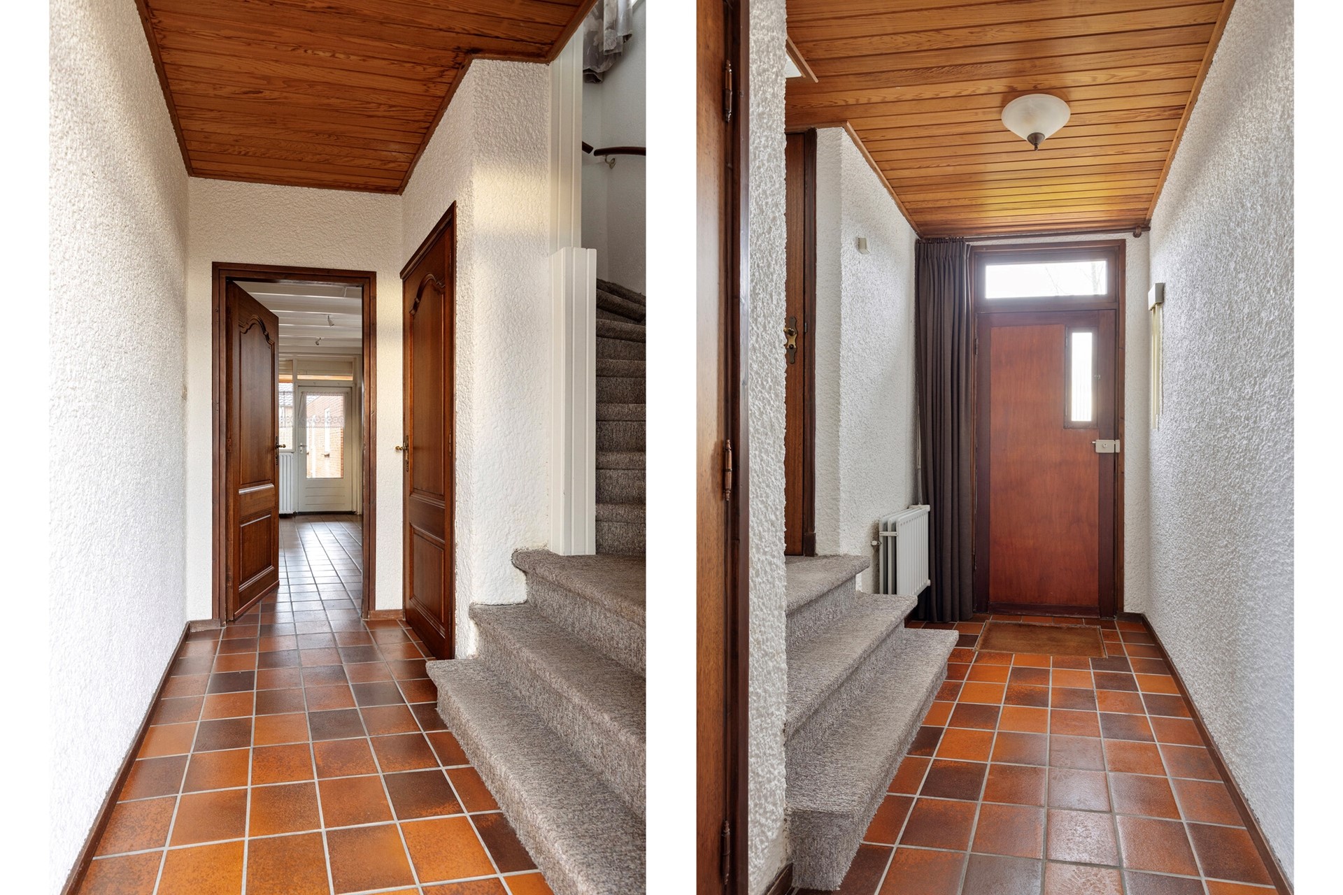 Via een hardhouten voordeur toegang tot de entree, met een tegelvloer, krabwerk wanden en een schroten plafond. Meterkast (o.a. 6 groepen + krachtstroom + 2x aardlekschakelaar). Onder de trapopgang bevindt zich een verdiepte kelderkast, welke volledig is betegeld. Natuurlijke ventilatie middels een raampje.