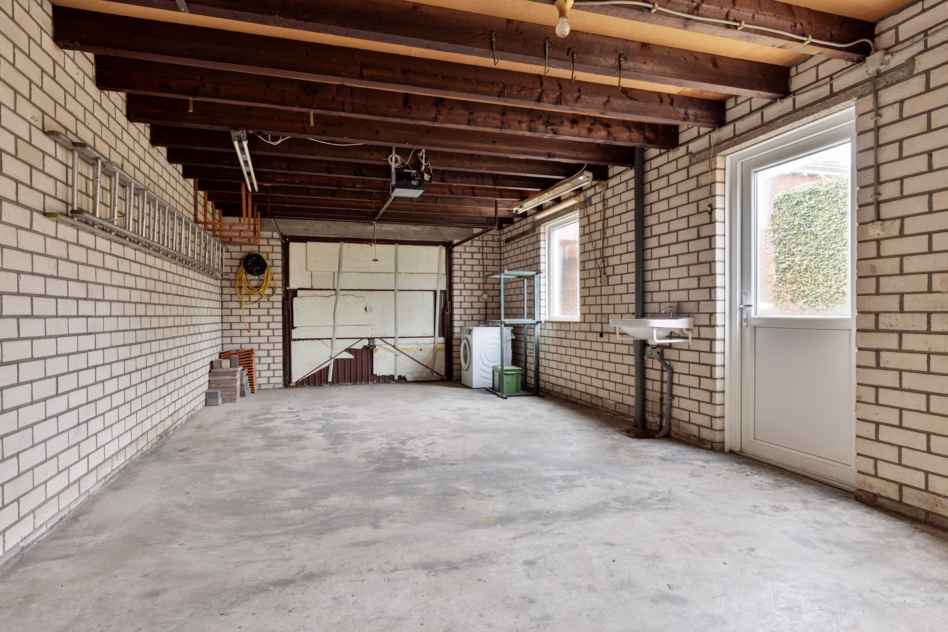 Vanaf de diepe en brede oprit via een, op afstand te bedienen stalen kantelpoort toegang tot de grote vrijstaande garage van ca. 33 m². Met een betonvloer, spouwmuren en een tweetal kunststof raamkozijnen en -deur met dubbele beglazing. Met een wastafel. Via een poort tussen de woning en de garage is de achtertuin bereikbaar, welke volledig is omheind en veel privacy biedt.