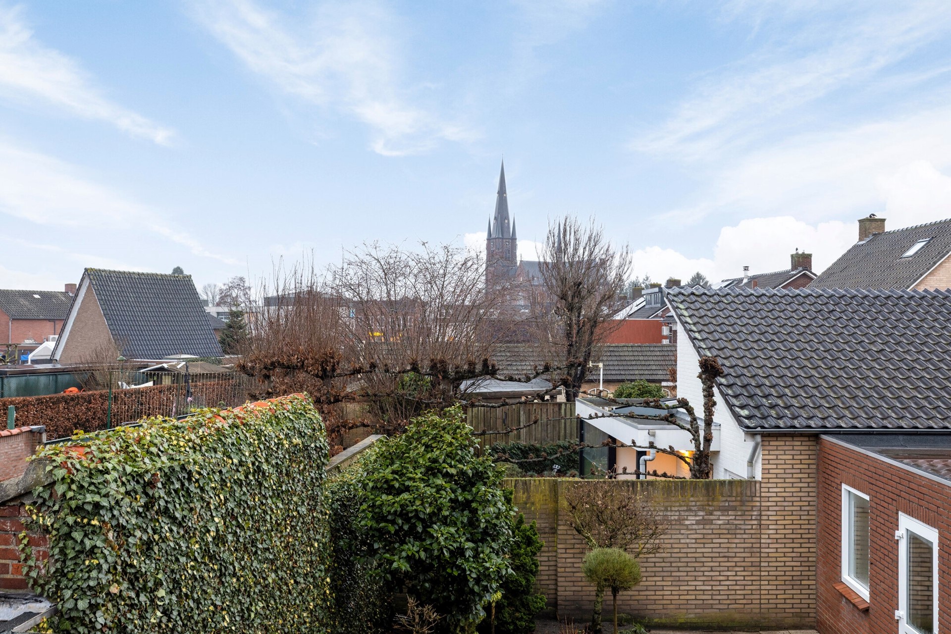 Via een deur met glas-in-roeden naar de woonkamer, met een tegelvloer, spachtelputz wanden en een stucwerk plafond. Met een schouw met een sfeervolle openhaard. Zowel aan de voor- als achterzijde een groot houten raamkozijn met dubbele beglazing en rolluiken. Aan de achterzijde een vrij zicht op de tuin en kerktoren van Budel.